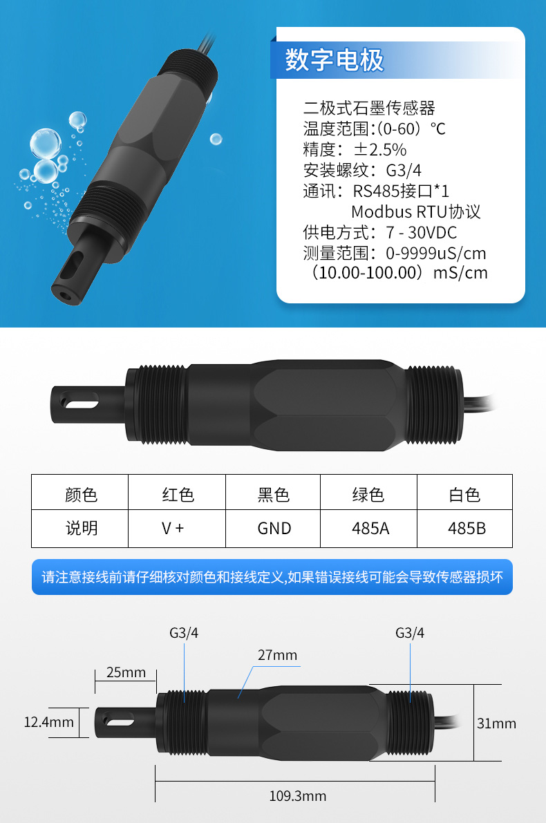 簡(jiǎn)要描述:我司針對(duì)水產(chǎn)養(yǎng)殖、環(huán)保水處理、工業(yè)過(guò)程等行業(yè)設(shè)計(jì)的電導(dǎo)率鹽度檢測(cè)模塊模塊,配套二極式石墨傳感器,可用于測(cè)量量程范圍內(nèi)水溶液體系中電導(dǎo)率,鹽度值的變化情況。