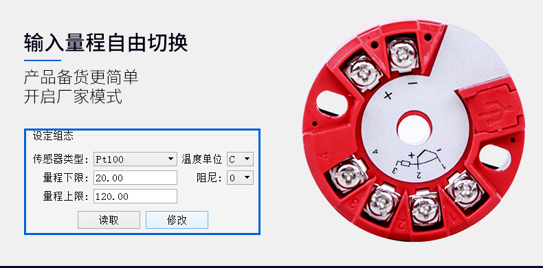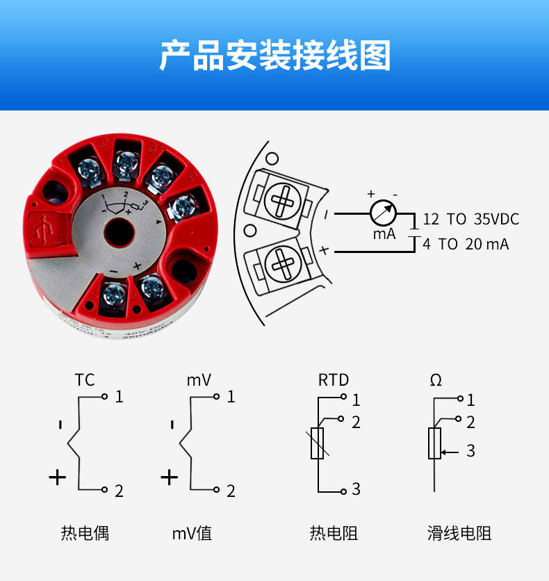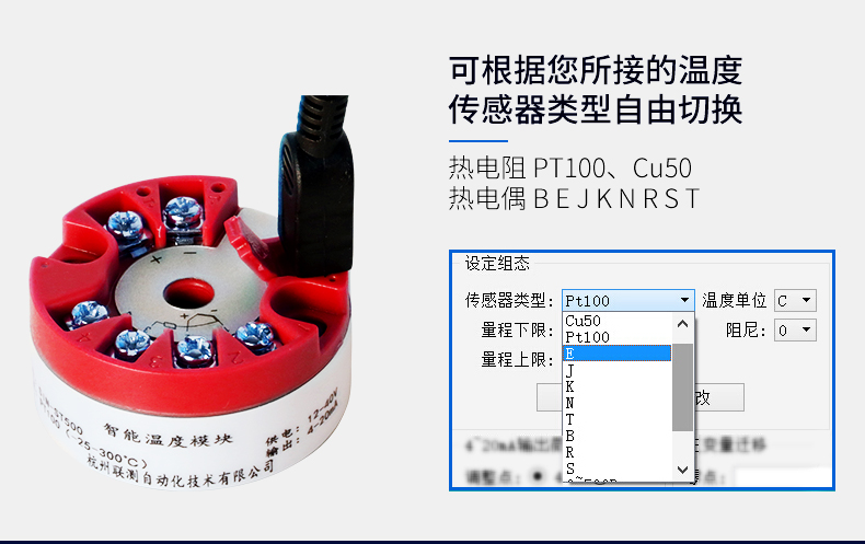 當(dāng)前位置:首頁 > 熱電偶 > 智能一體化溫度變送器模塊轉(zhuǎn)4-20mA輸出熱電阻pt100熱電偶K型隔離