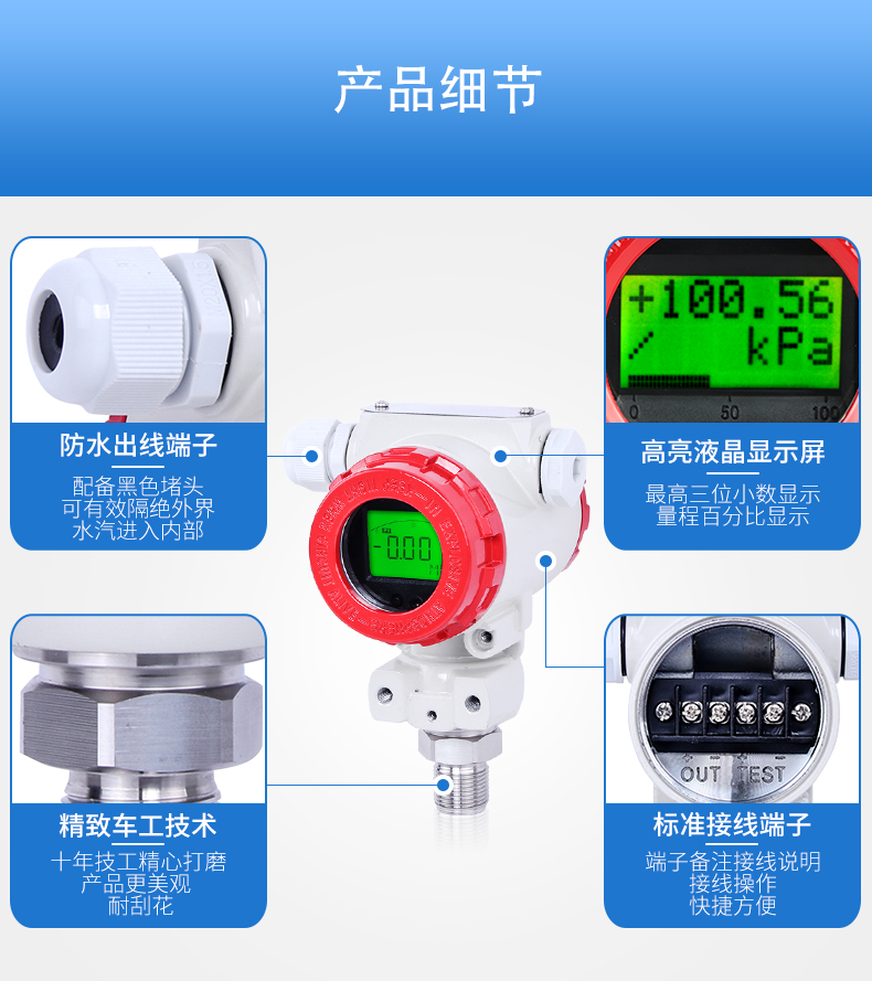 簡要描述:壓力變送器壓力敏感核心采用了高性能的硅壓阻式壓力 充油芯體,內部的專用集成電路將傳感器毫伏信號轉換成標 準遠距離傳輸的電流信號